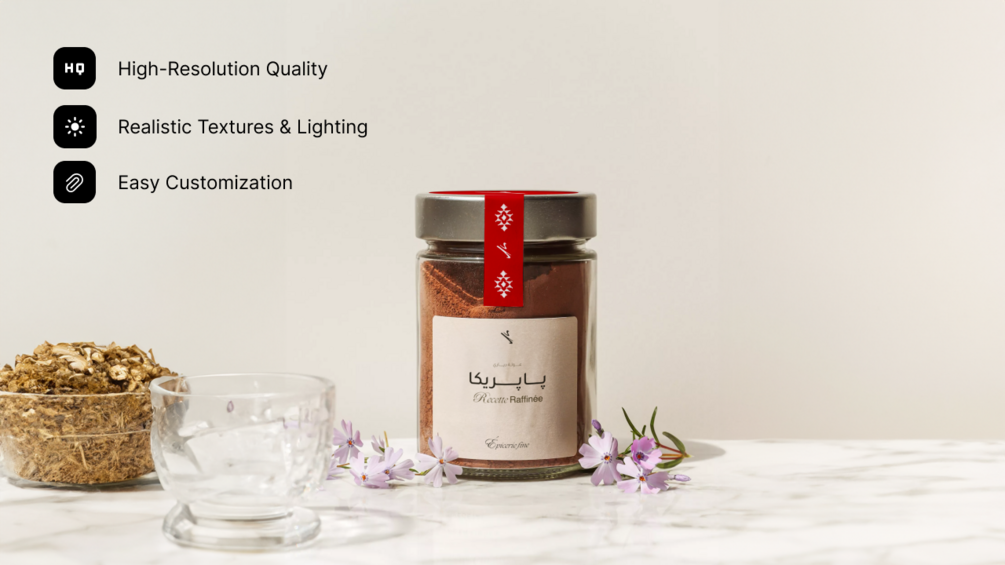 - Afawih Spice Bottle : Features a glass bottle with a silver cap. Dimensions: 2500x4444px.