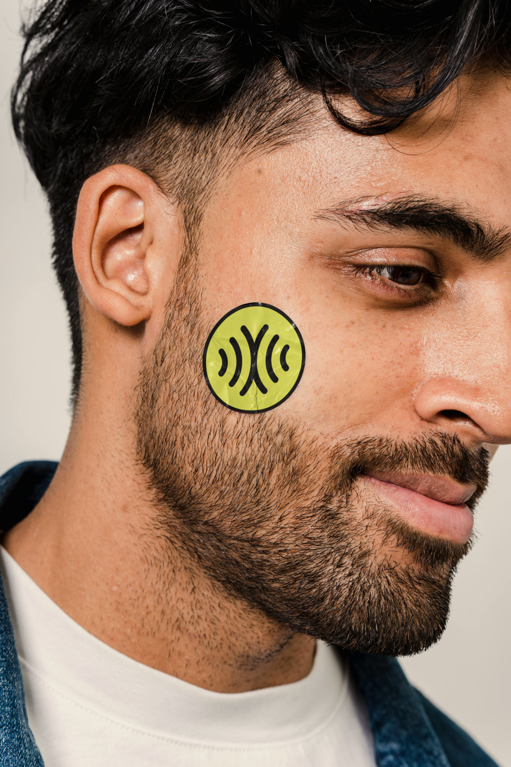 Ultra-Realistic Sticker Mockup on Man's Face by Falta Studio for LOUNA